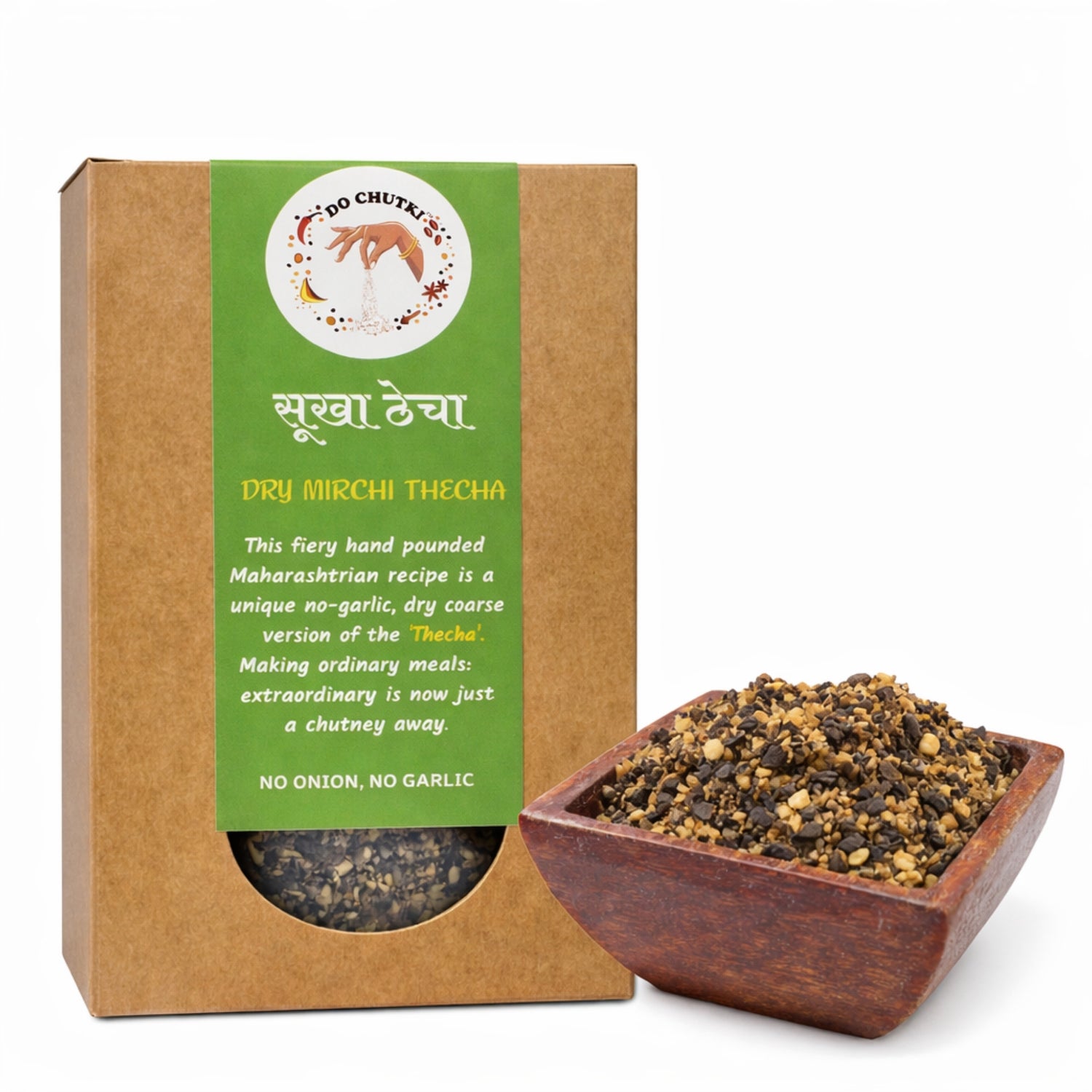 Spicy, crunchy thali favourite – Traditionally paired with bhakri, it also elevates wada pav, khakras and salads. Or mix into thick dahi for a flavourful dip.