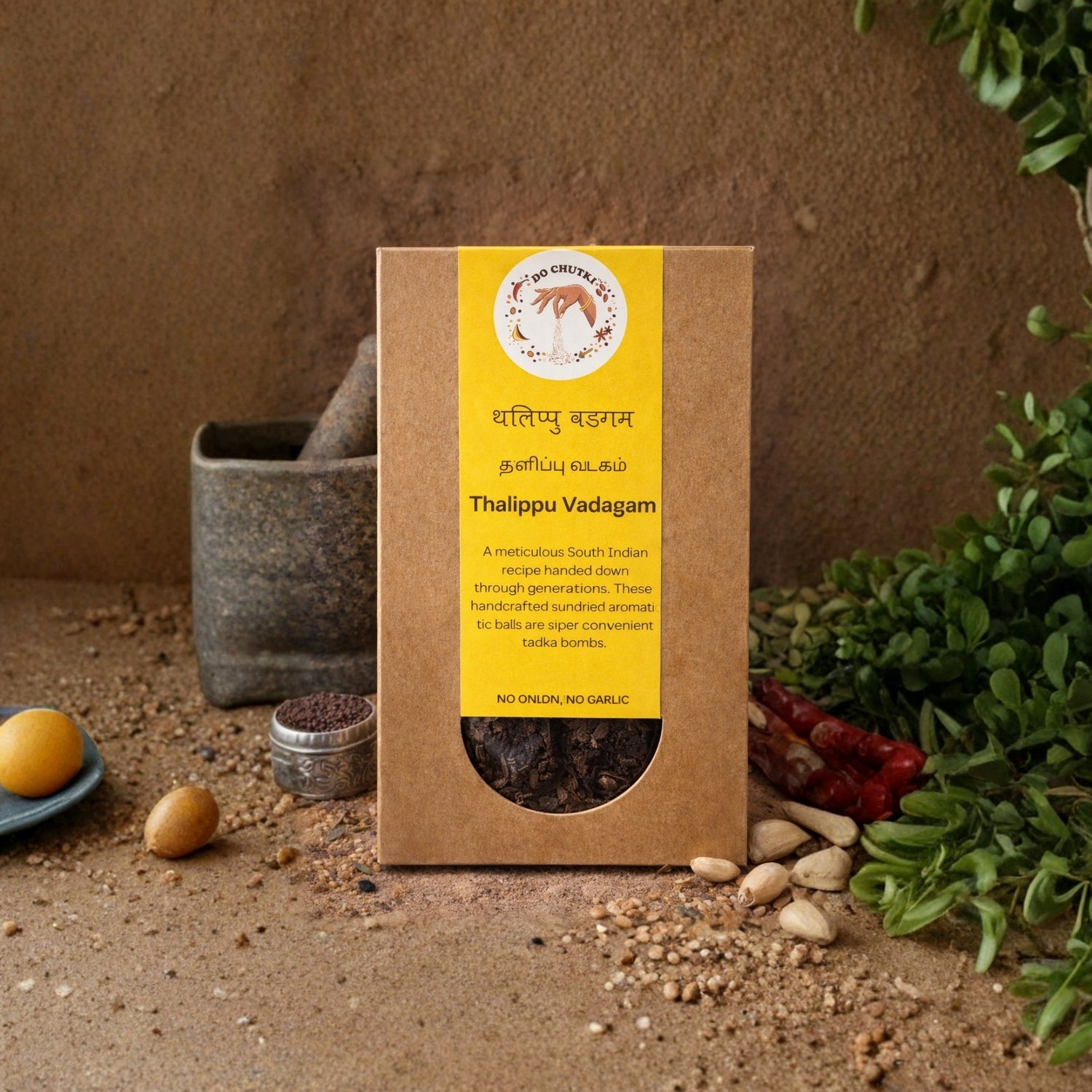 Instant tadka bomb – A sun-dried blend of essential chaunk ingredients, carefully preserved to lock in aroma and flavour. Perfect for dals, sambars, rasams, and everyday curries. Simply crush, lightly fry in ghee or oil, and stir into your gravy for a quick, flavourful tempering.