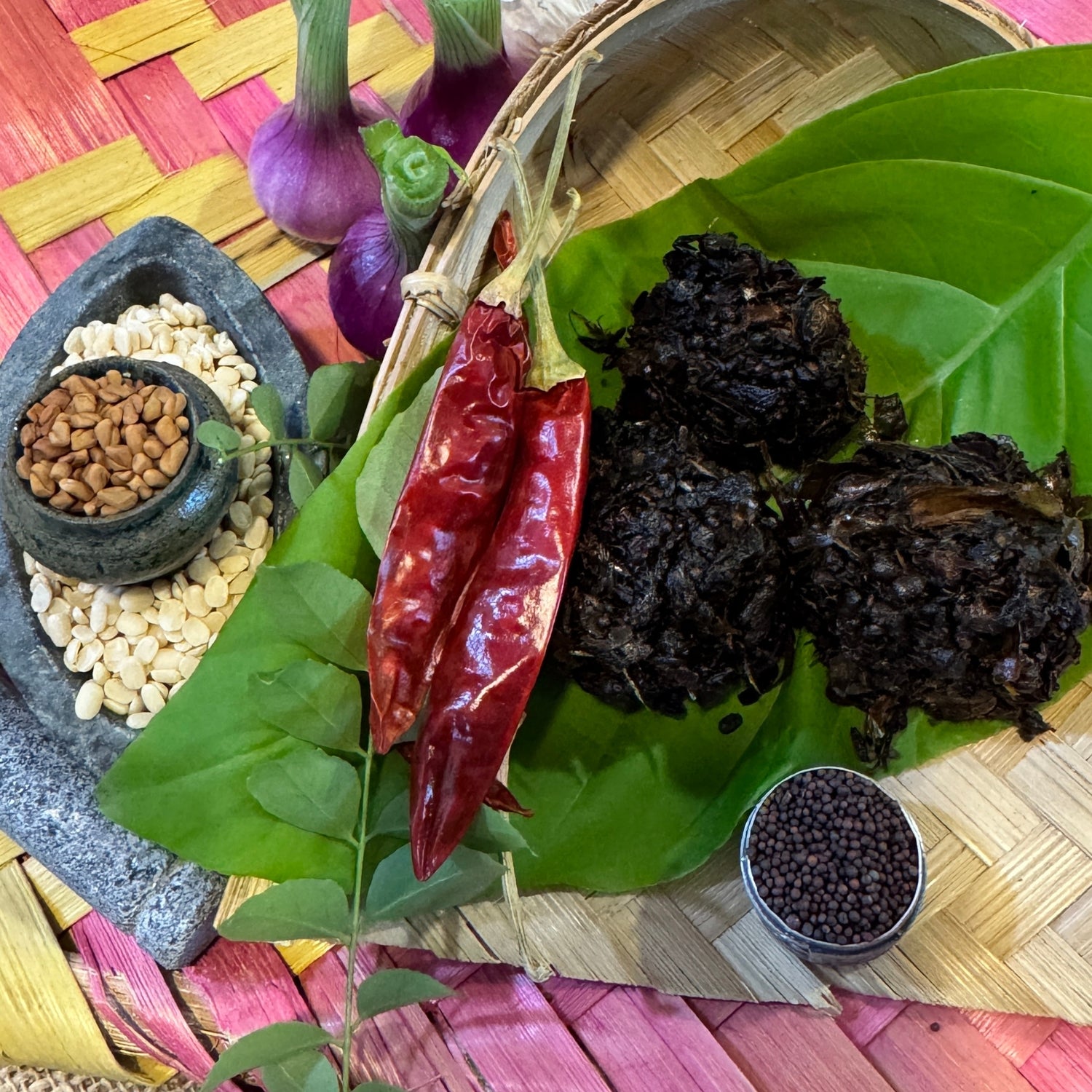 A meticulous South Indian recipe handed down through generations. These handcrafted sundried aromatic balls are super convenient tadka bombs.